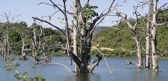 Presa del Naranjo Situada en la comunidad de El Naranjo, al este de la cabecera municipal, este apacible lugar ofrece una vista impresionante con decenas de grandes árboles muertos atrapados en el interior de la presa. Aquí podrás practicar la pesca deportiva de diferentes especies como lobina, carpa y mojarra, y tendrás la oportunidad de participar en los torneos de pesca que año con año aquí se realizan. Además podrás ejercitarte con diferentes actividades como ciclismo de montaña o atletismo en agradables caminos y veredas excelentes para explorar y disfrutar de la naturaleza, o si prefieres la natación puedes refrescarte en las cristalinas aguas. |
